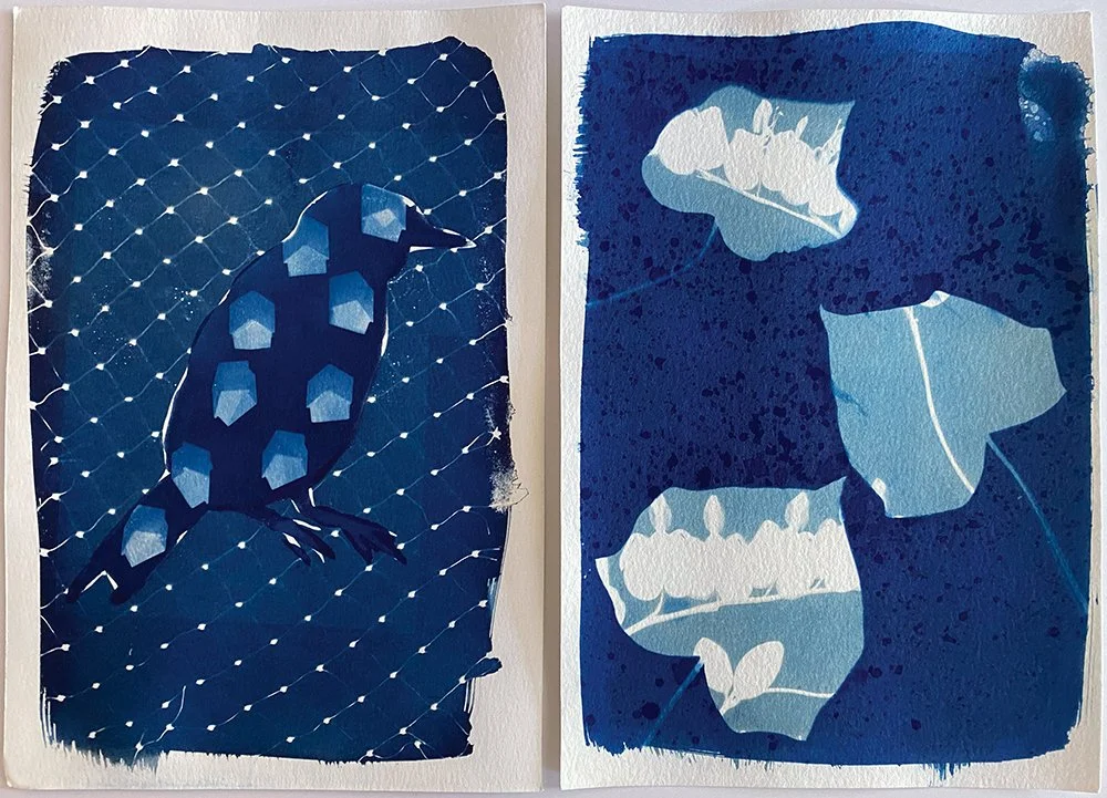 This series investigates the creative potential of alternative photographic processes through the use of imagery, found objects, and layered exposures. To enhance the visual depth and tonal richness, many prints were treated with natural toners, yielding deeper, more saturated hues of blue and gold. Select works were further embellished with hand painting or embroidery, introducing a unique layer of personal interpretation and tactile vibrancy to each piece.